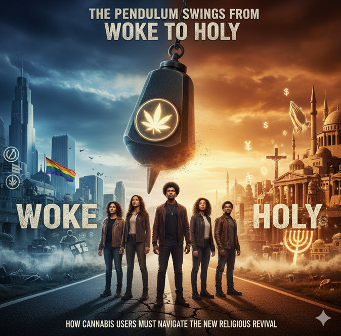 Ganja Theory: The Pendulum Swings from Woke to Holy – How Cannabis Users Must Navigate the New Religious Revival The Sacred and the Stoned: When Identity Politics Broke the Machine Pass that joint and settle in, because we need to talk about how America’s latest cultural swing got so damn extreme. We’re watching a textbook…